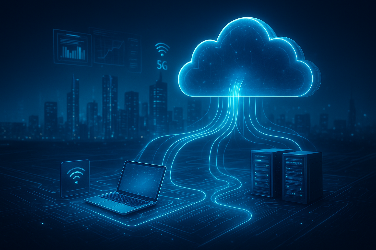 Traffic lights, waste systems, and sensors run locally while the city’s data is stored and analyzed in the cloud for planning.