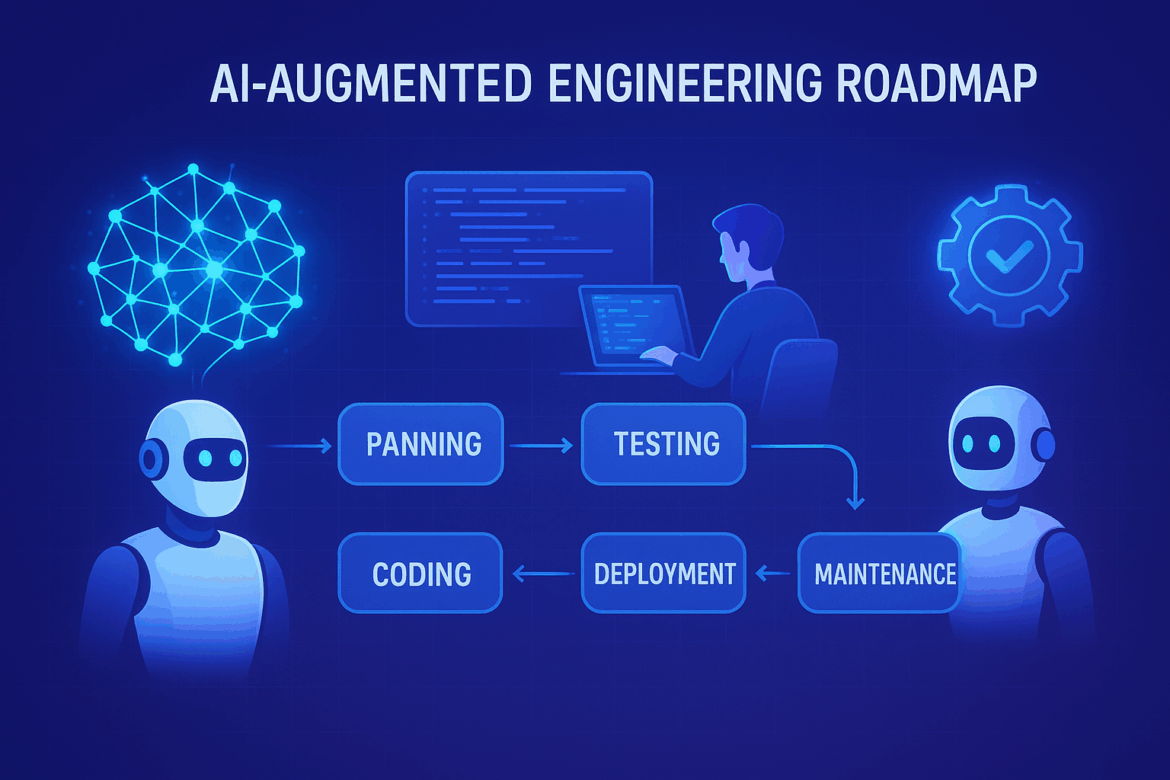 The AI-Augmented Engineering Roadmap illustrates the potential of AI to enhance the software development process from idea to execution.
