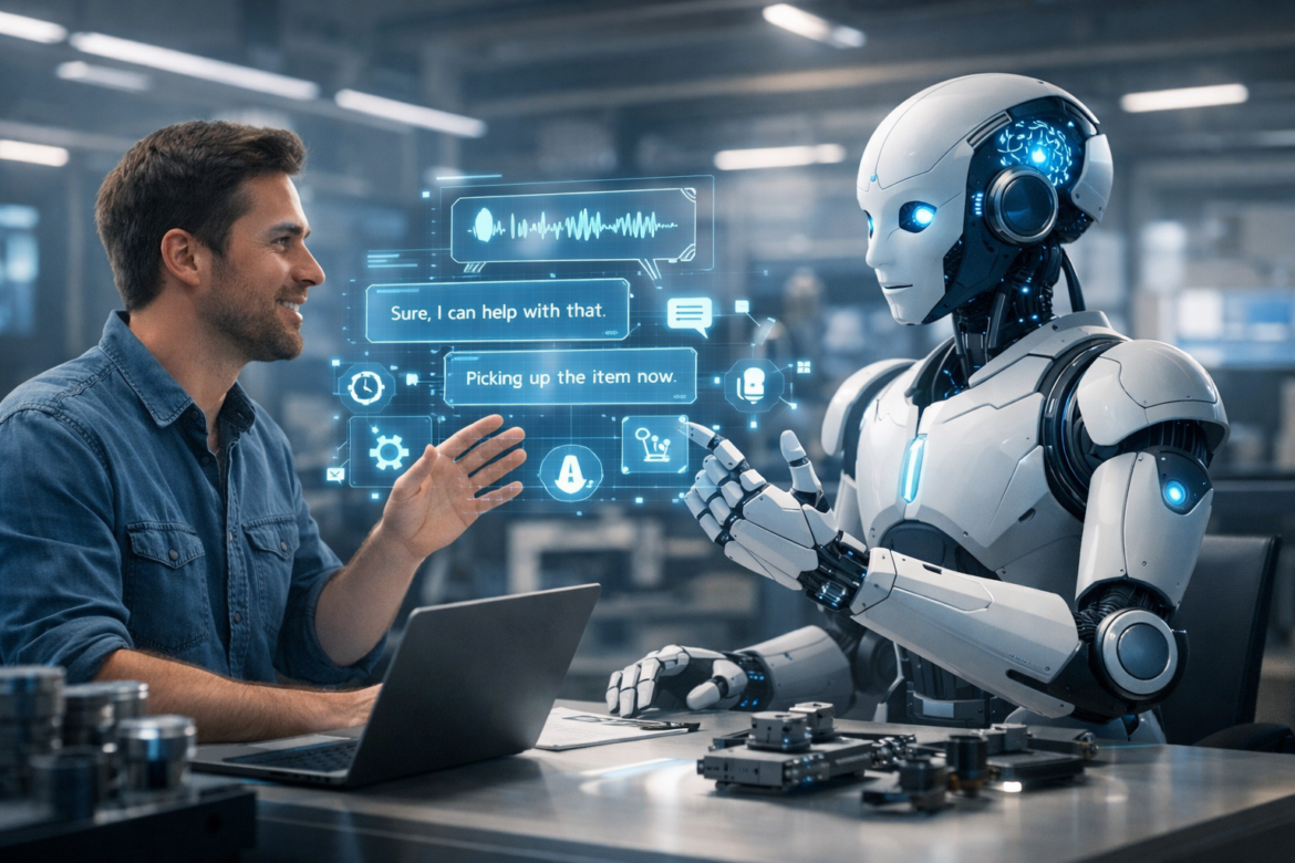 To illustrate, an employee could utter the words, “Pick up the box and place it on the shelf,” and the robot will not only understand but also complete the task.