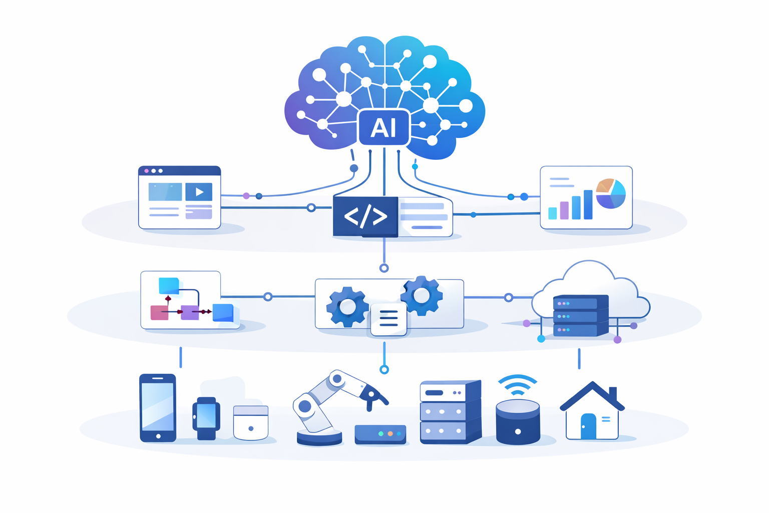 AI as a control layer means using artificial intelligence as the main decision-maker for software, processes, and connected devices. Instead of humans manually controlling systems or relying on fixed rules, AI decides what to do, when to do it, and how to do it.