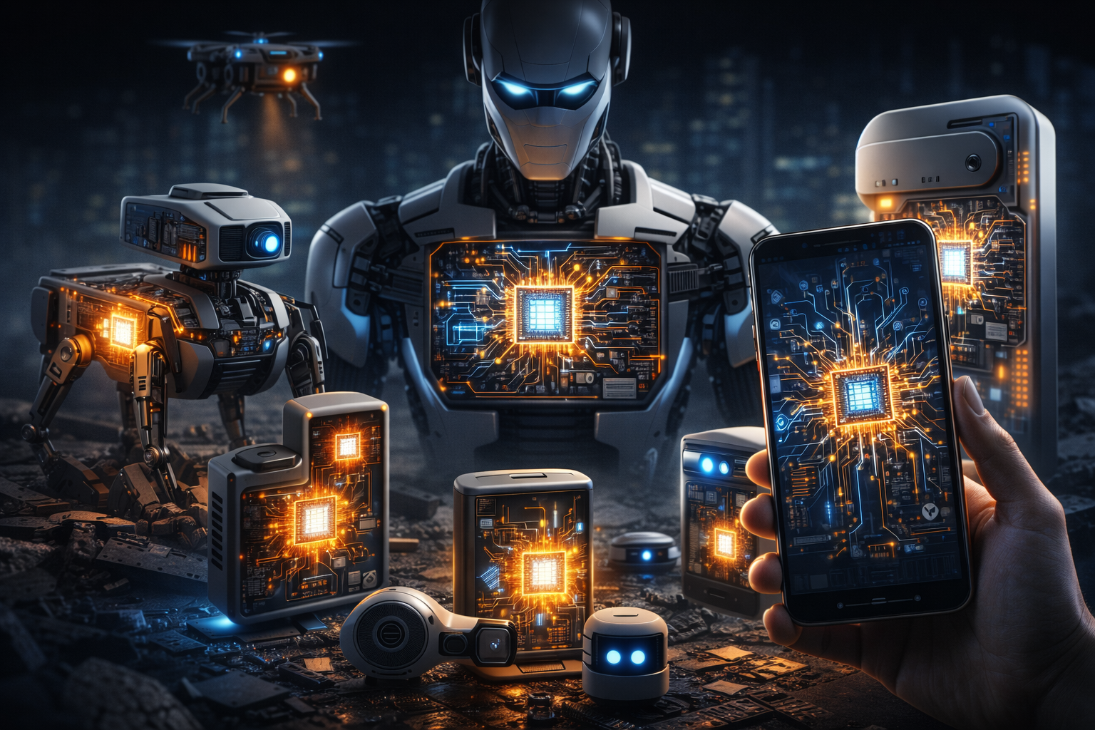 Robots use on-device intelligence to move, avoid obstacles, and complete tasks independently.