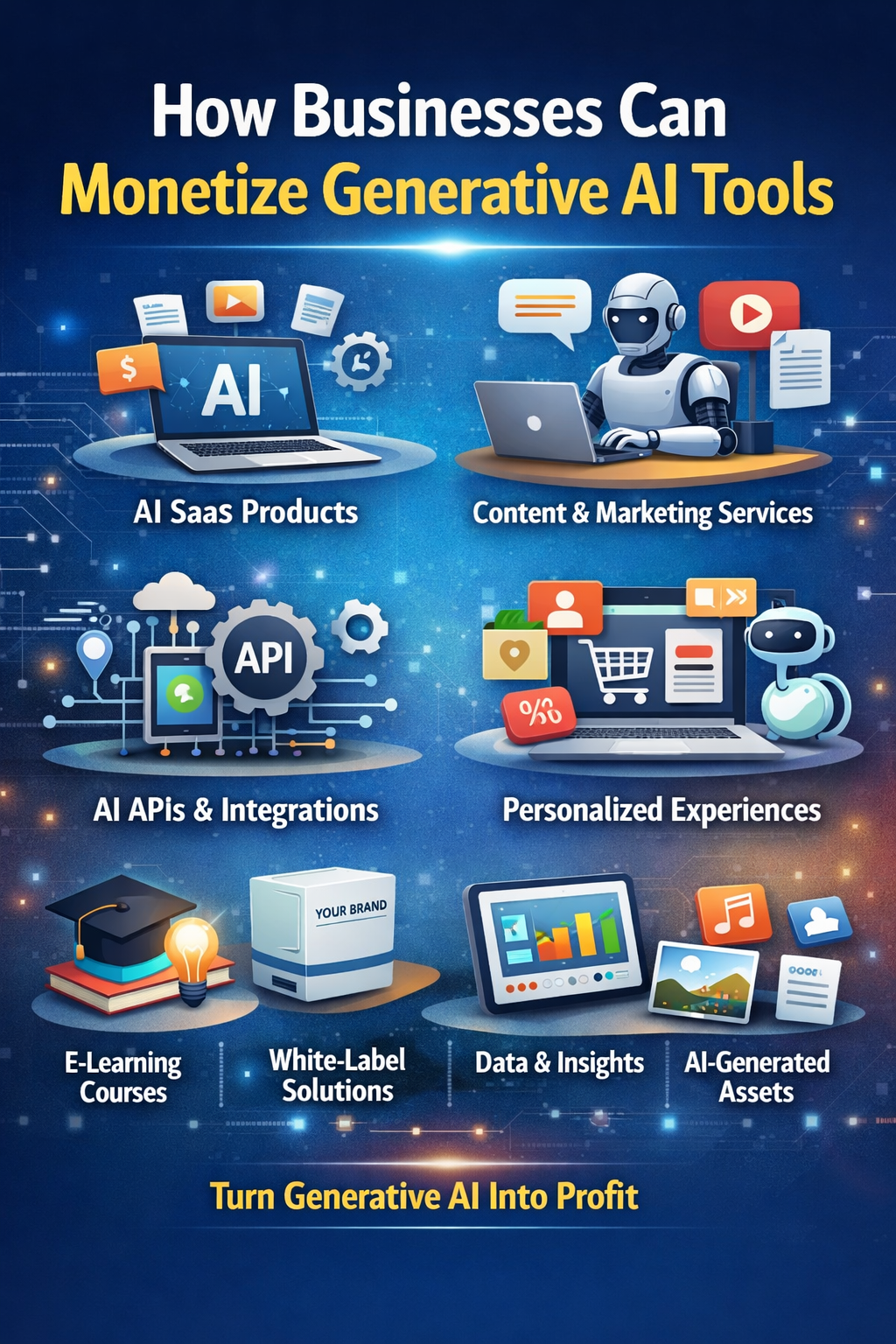 Below are simple and practical ways businesses can monetize generative AI tools.