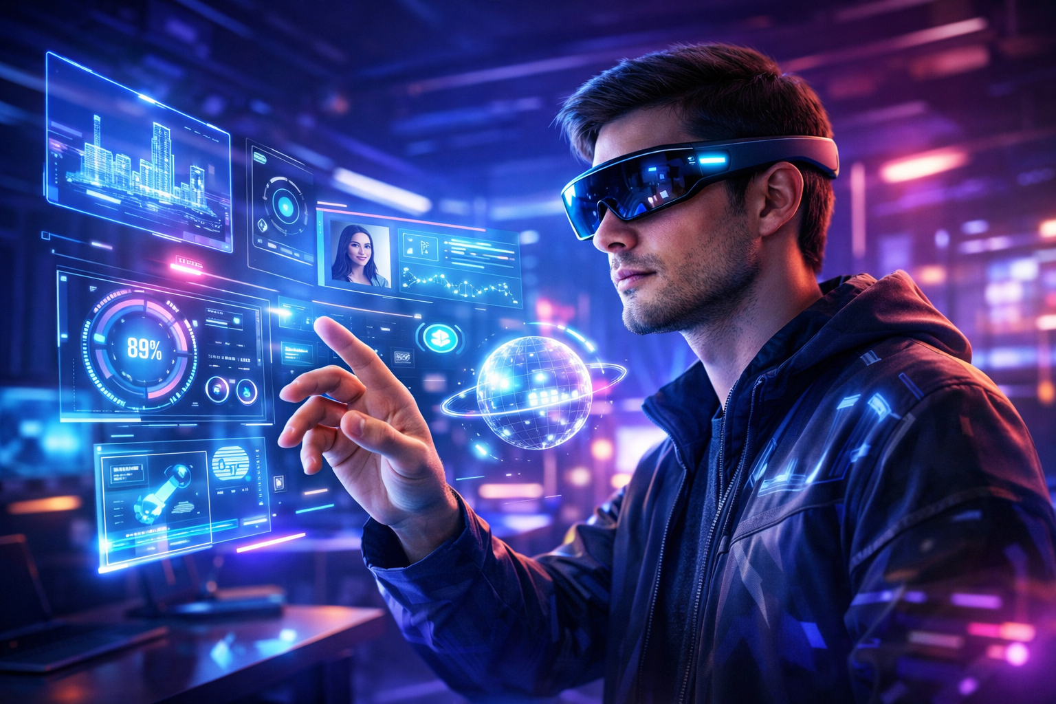 For example, with MR glasses you could see a digital screen floating in front of you while still seeing the room around you. You can interact with these digital objects using gestures, voice commands, or simple movements. This makes the experience feel more natural and interactive.